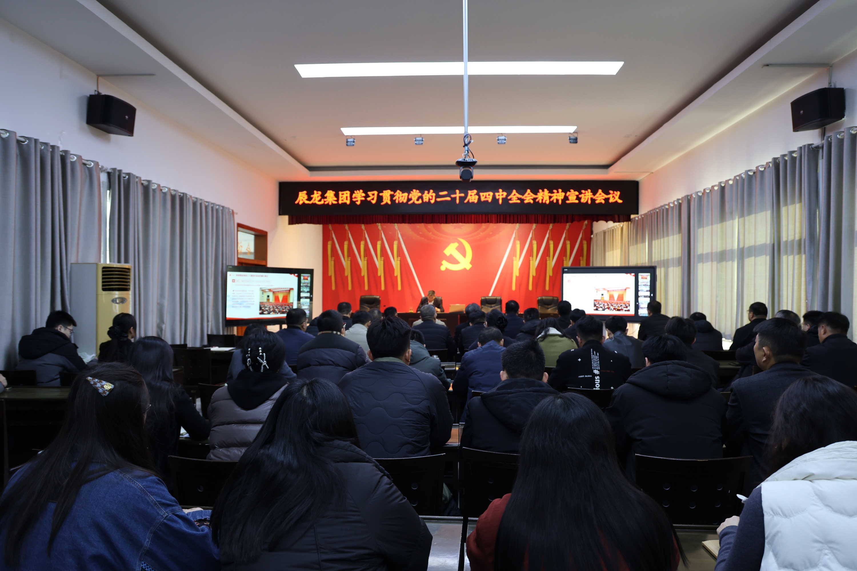 12月15日,辰龍集團學習貫徹黨的二十屆四中全會精神宣講會議舉行,集團黨委書記、董事長宗成偉作宣講報告。集團領(lǐng)導班子成員、總部全員在主會場參加會議,各企業(yè)中層正職以上干部及黨員群眾代表在6個分會場以視頻會議形式參加。